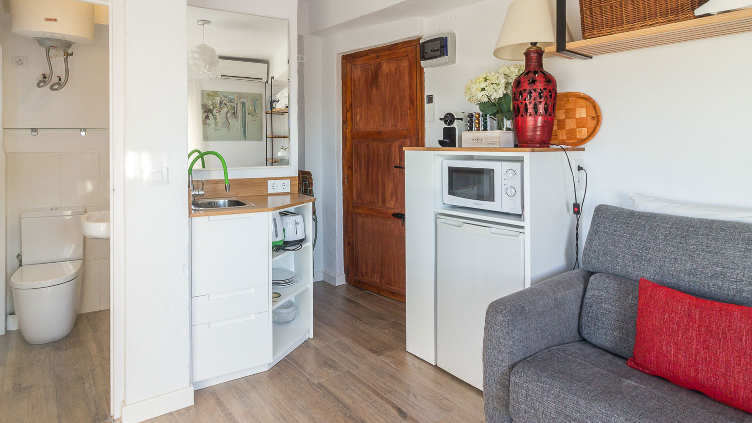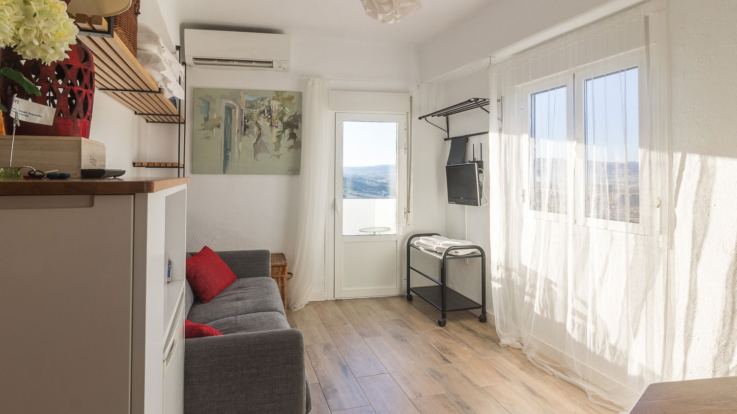 Estudio independiente encantador ubicado en la parte más antigua de la histórica localidad de Mojácar con excelentes vistas. El estudio cuenta con sofá-cama, baño con ducha termostática, microondas, nevera, tostadora, hervidor de agua, cubiertos y vajilla. Confortable, con una superficie total de alrededor de 15 metros cuadrados, cuenta con su propia entrada privada desde la calle y hay un balcón. El estudio está perfectamente situado para proporcionar vistas panorámicas al tanto del mar como del valle de los volcanes. En el frigorífico hay una botella de buen cava para disfrutar de las preciosas puestas de sol. Es un lugar fantástico!